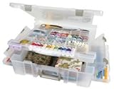 6981AB Features: -Constructed of polypropylene. -Translucent materials, shatterproof boxes have sturdy hinges. -Designed to stack with each other, acid free. -Ultimate storage unit. -Four boxes in one. -Divided top / open bottom. -Two side bins, with dividers, allow for multiple storage options. -Stackable. -One year manufactures defects. -Dimensions: 5'' H x 17.25'' W x 16.75'' D.