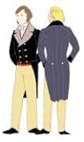 RC903 - 1840s Dress Coat Pattern. Fits chests 34"-54". All sizes included in one envelope. Embellishment suggestions included. This pattern for Men's Dress Coat or Tail Coat for the 1840s with narrow cuffs and skirts, cut-away front, waist seam and side panel. Full size paper patterns for Men's Dress Coat for the 1840s with narrow cuffs and skirts, cut-away front, and side panel. Fits chests 34"-54". All sizes included in one envelope. Embellishment suggestions included. Suggested Fabrics: wool, heavyweight silk, lightweight silk or linen for lining, heavy linen or canvas for interlining. Yardage Requirements: 3 yds at least 45" wide. Notions: thread, Up to 24 5/8" buttons for front, cuffs, and vents, buttonhole floss. Great for Naopoleanic and Regency, Pride and Prejudice, Sense and Sensibility, Mr. Darcy, Elizabeth Bennett impressions or fancy modern look. Also makes a great early have of 1800's or Victorian impression.