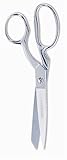 Gingher's 8 inch Dressmaker's Shears have blunt points to prevent snags on sheer fabrics. A serrated edge gently grips fabrics, so the knife edge can flawlessly cut through multiple layers of fabric. Quilters like the medium-sized, bent handles for working comfortably across a flat surface. The double-plated chrome finish over nickel is both handsome and durable.