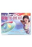Tie-dye is fun! It's easy to create one-of-a-kind designs and distinctive colors by simply folding, tying with rubber bands, and dunking in colorful dyes. the ties prevent the dye from reaching some sections of the fabric, resulting in unique, colorful designs.The Rit All-In-One Tie-Dye kit contains everything you'll need to tie-dye up to five t-shirts:Four packets of Rit Dye - teal, fuchsia, golden yellow, purpleOne pair of vinyl gloves18 rubber bandsStep by step brochure explaining how to tie-dye